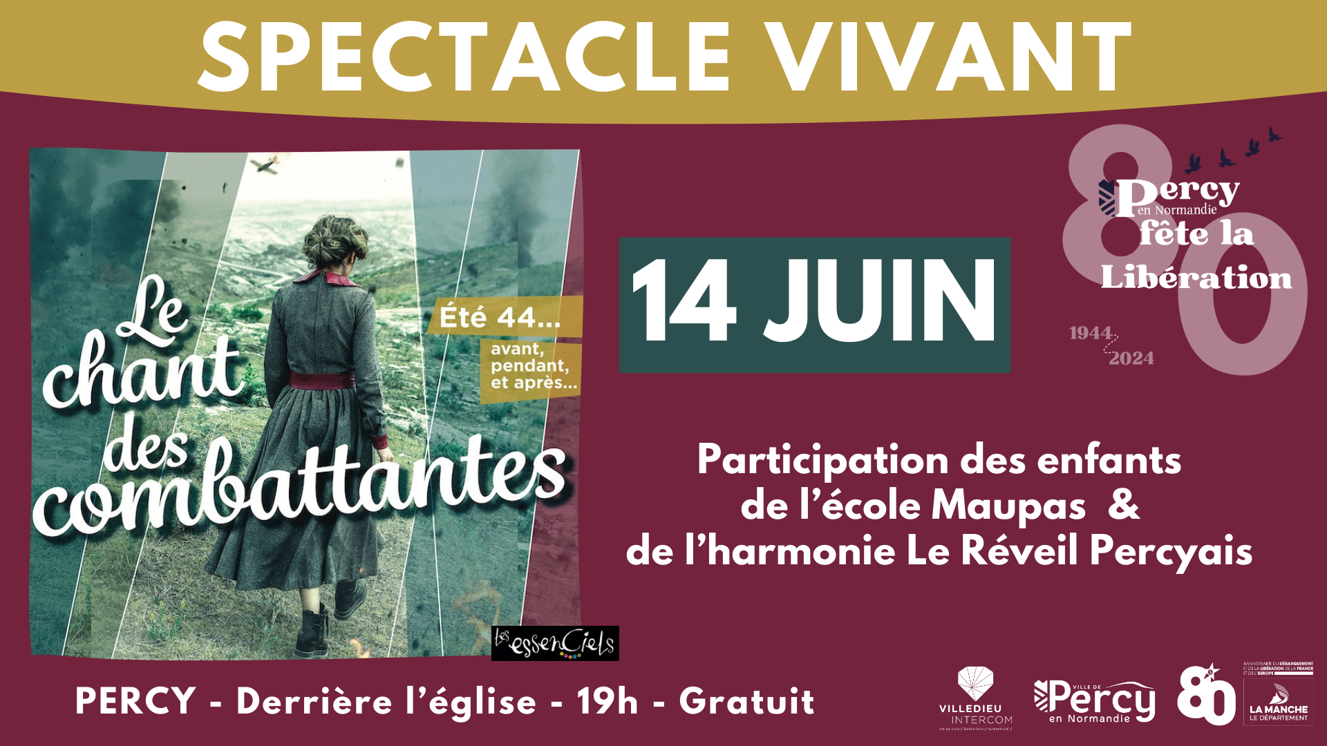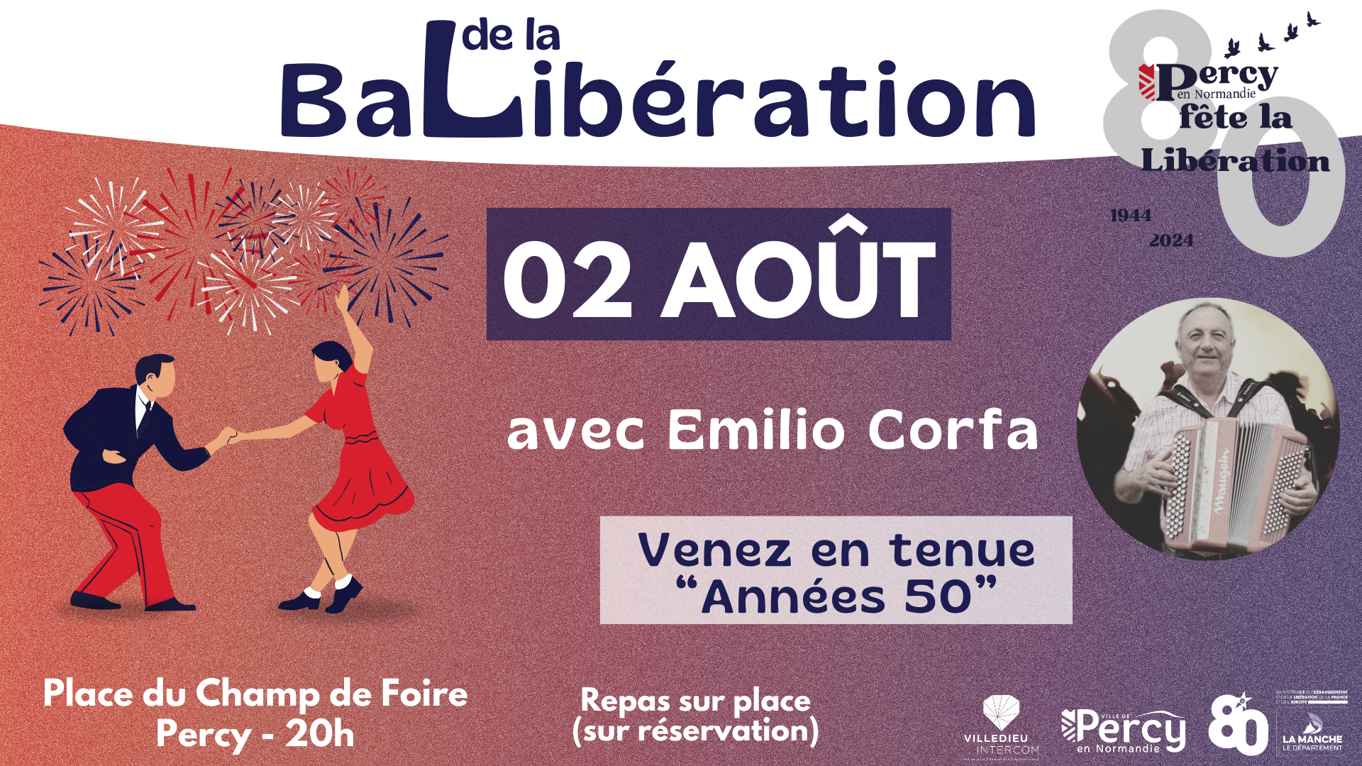 Pour célébrer le 80ème anniversaire du débarquement, j’ai eu l’occasion de concevoir un logo spécifique à cet événement et à Percy-en-Normandie. Pour sa création, j’ai réalisé une ébauche sur Canva, puis je l’ai retravaillée sur Illustrator afin d’assurer sa qualité. D’autres réalisations, telles que le programme des événements et divers visuels, ont également été réalisées, mais ne sont pas encore rendues publiques.